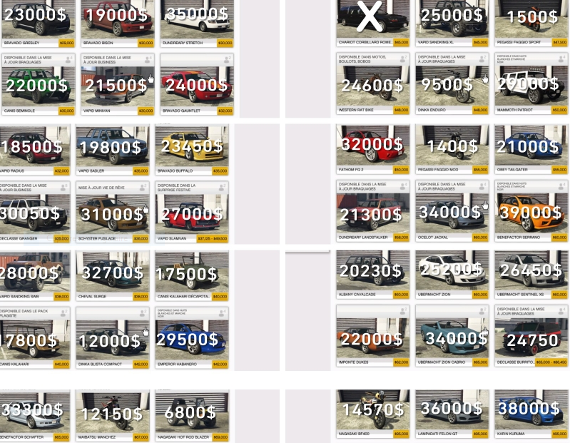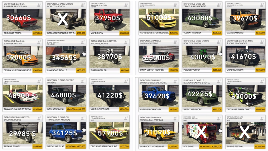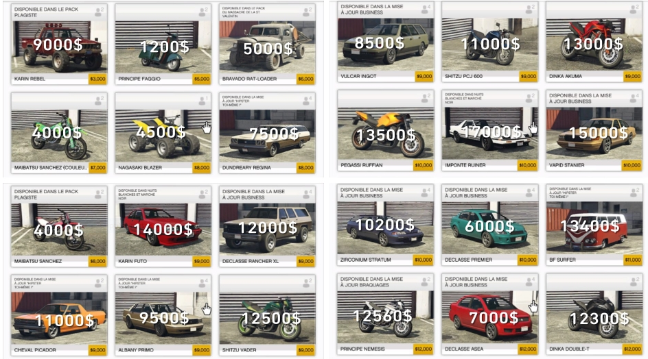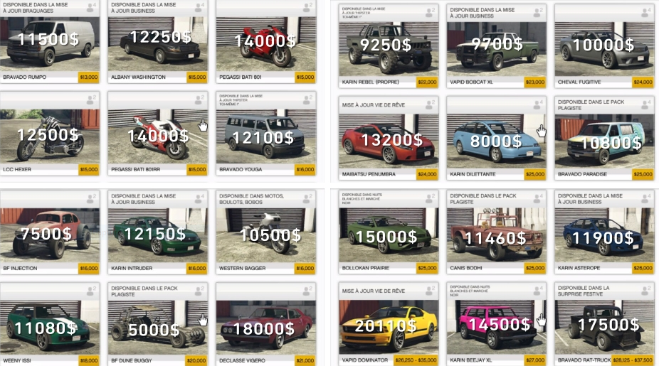 VÉHICULES DE DÉPART